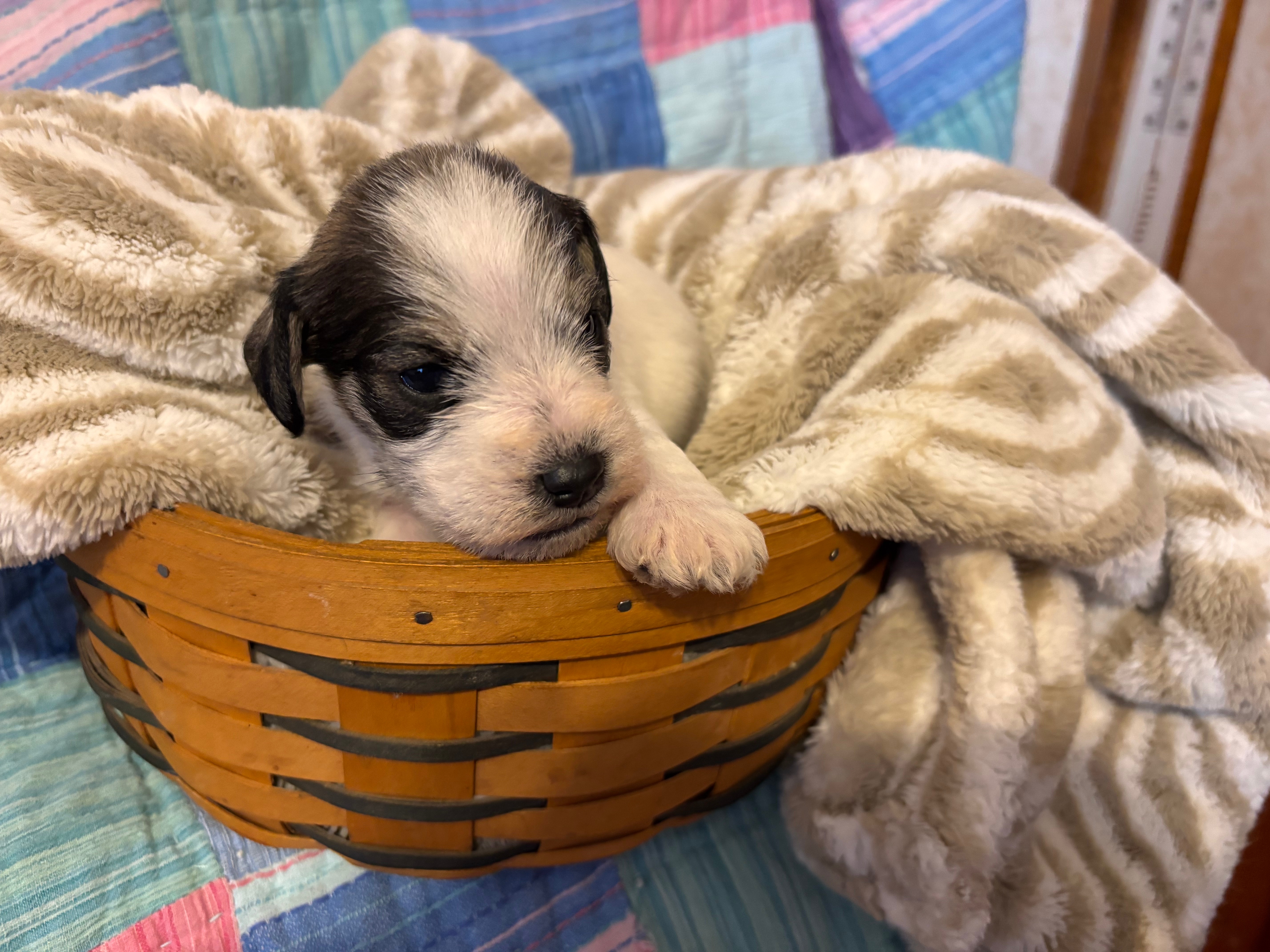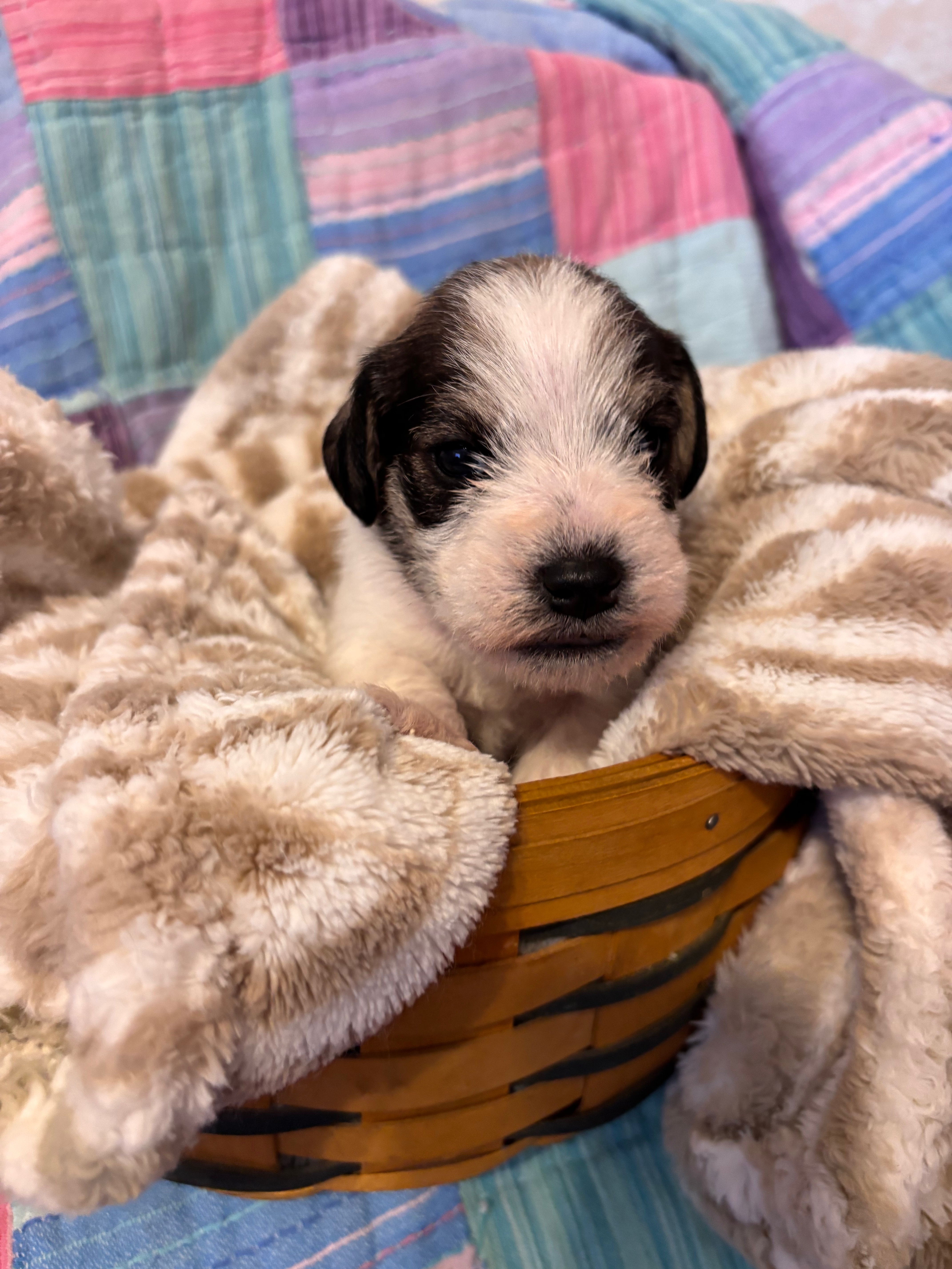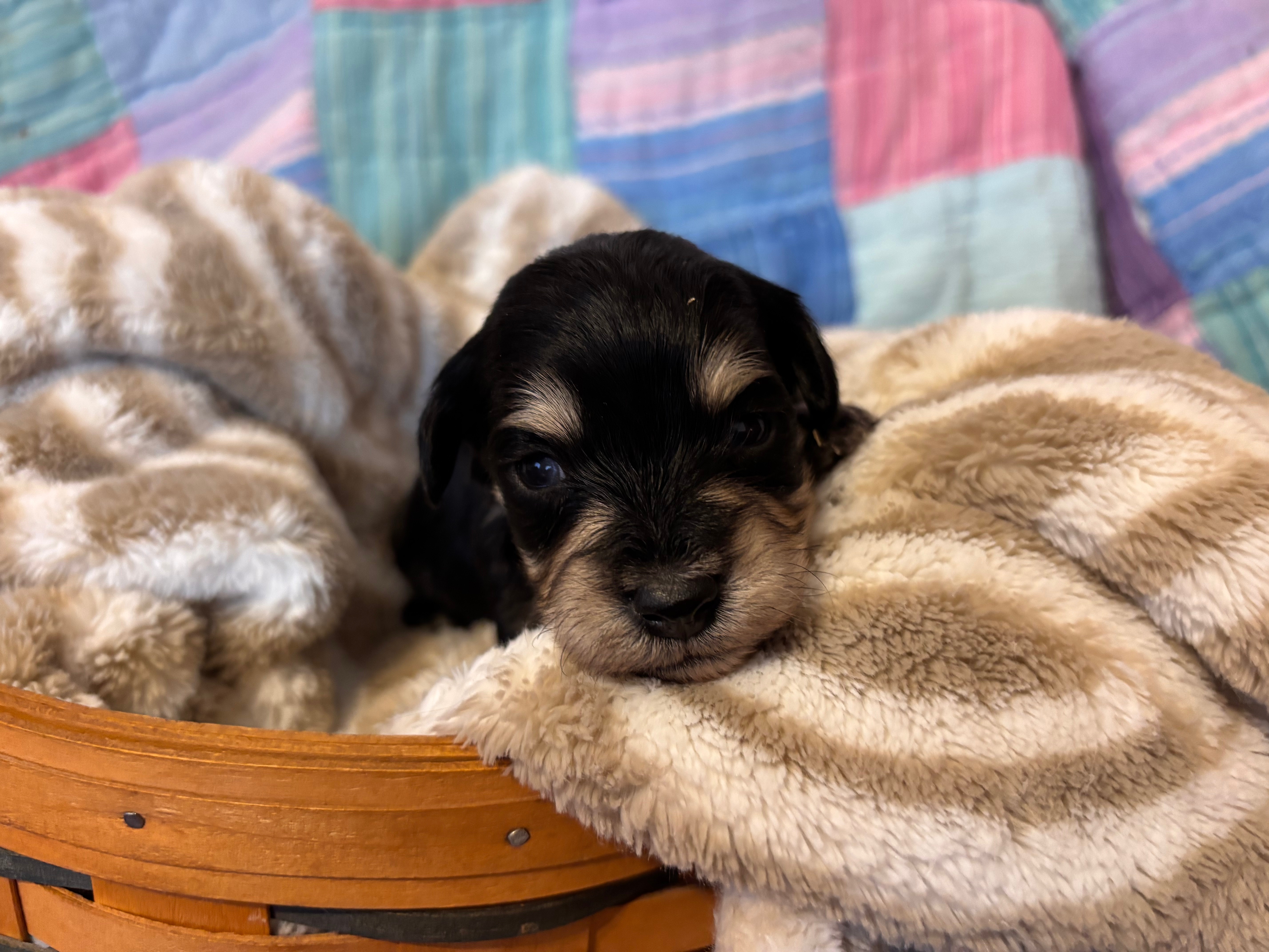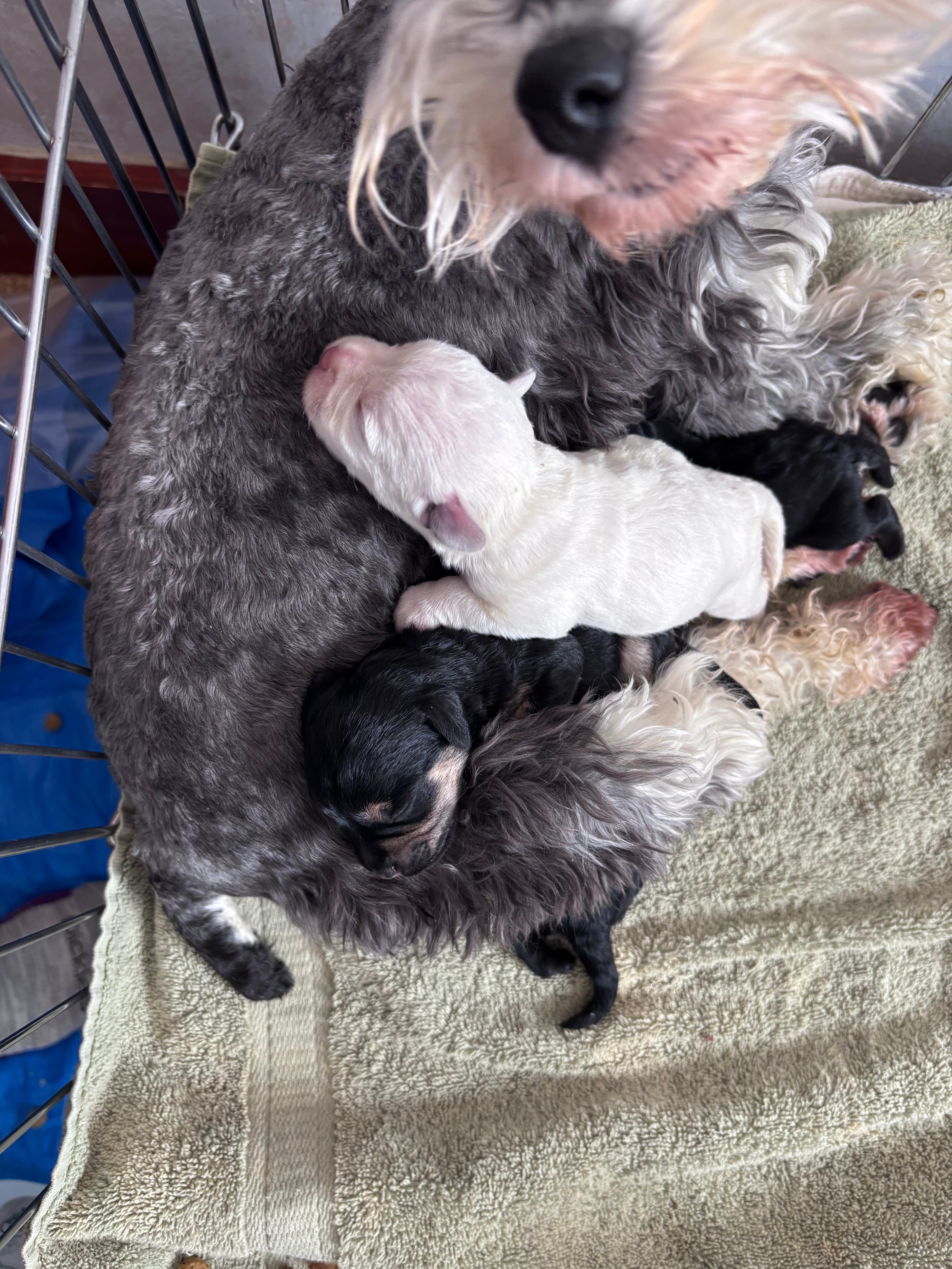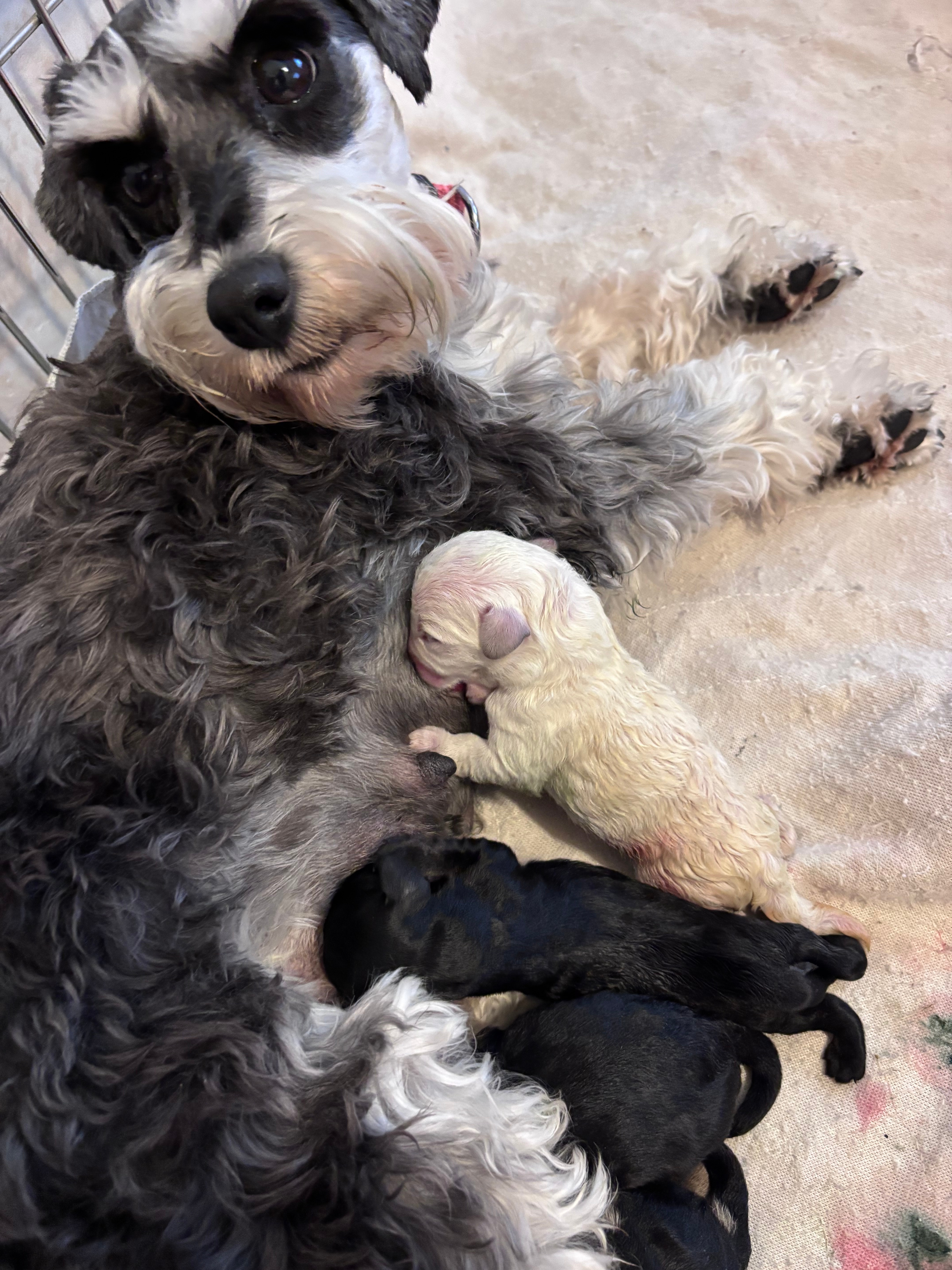 Miniature Schnoodles: Petunia and Jamie have had 4 sweet pups, born January 8th! I am expecting Aspen to give birth any day now.