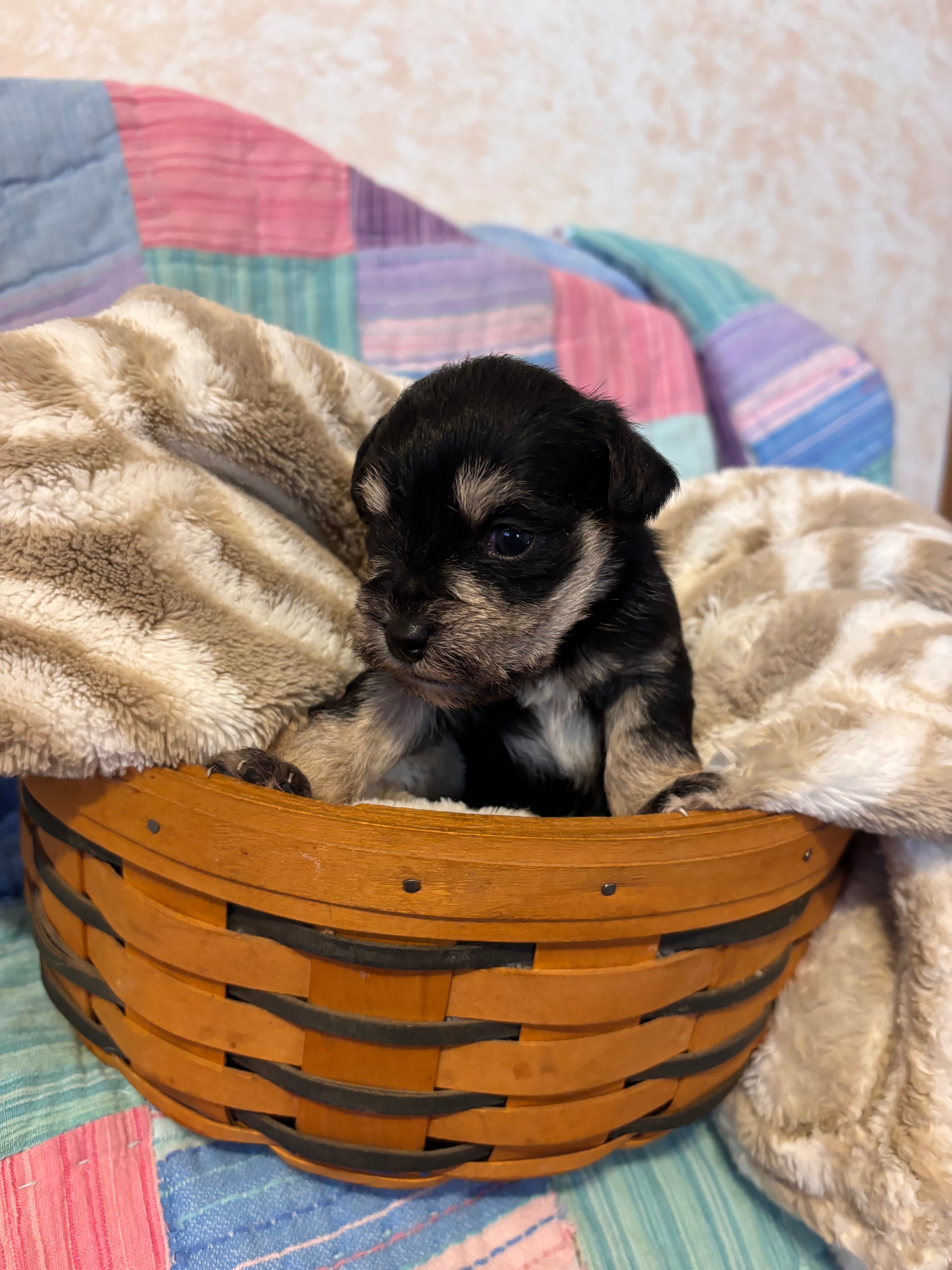 For over 20 years Debbie St. Louis, Colorado Springs veterinarian and her family of 7 have raised hypoallergenic schnauzer puppies and now poodle and schnoodle babies. We do a few select litters each year. Each puppy is trained, evaluated and handled with the utmost care as members of our family. We are very careful about the health history of our parents, the nutrition of all the dogs and the health of the puppies.