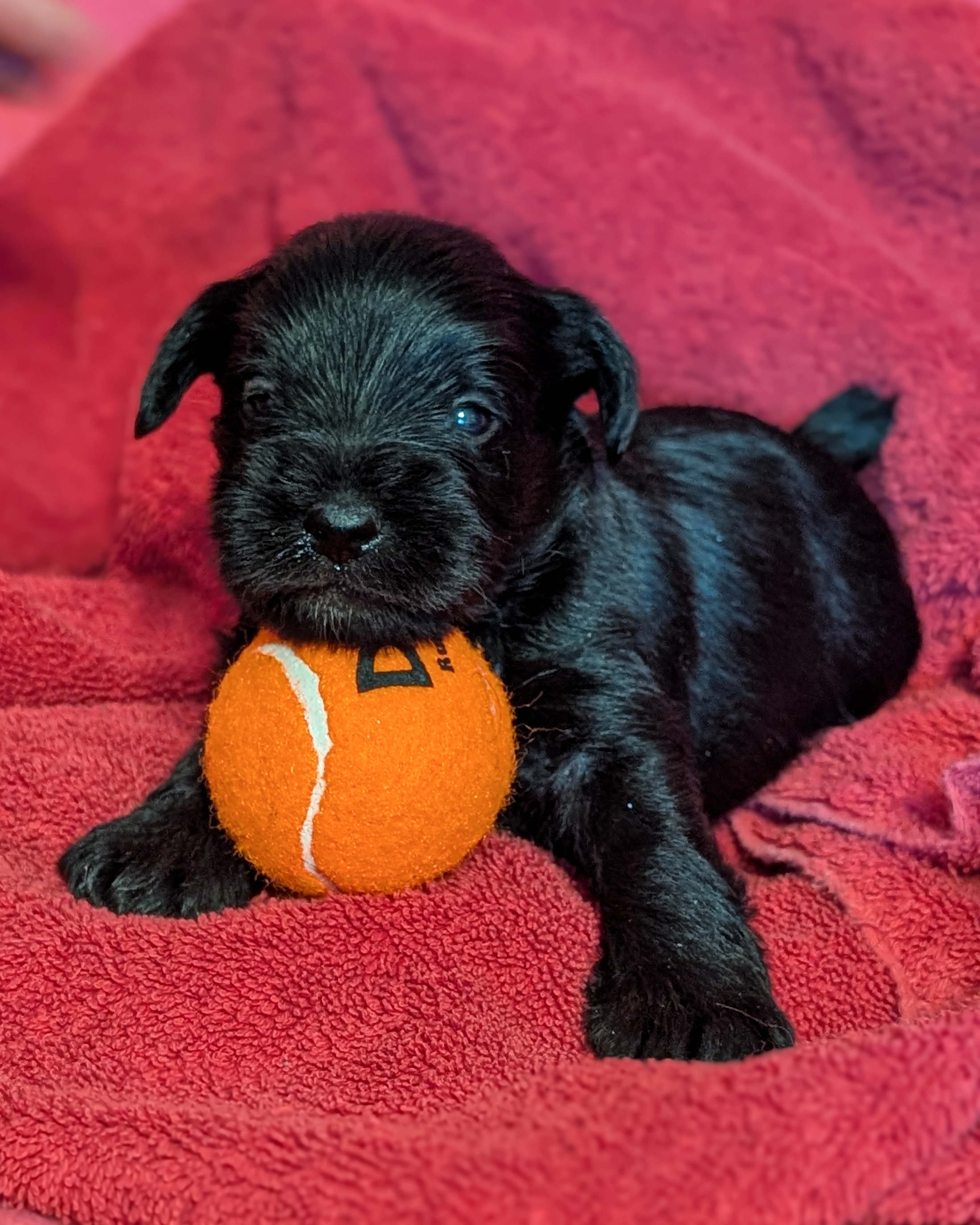 Piper and Chip still have one incredible Schnauzer puppy available! Sparkle was born on New Years Eve, he is so sweet and loving but definitely knows how to have a great time playing! He is very responsive to people, always running up to us and our visitors wanting all the love.